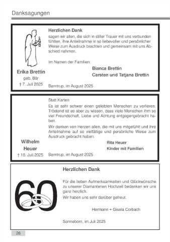 Wir danken von Herzen allen, die mit uns mitgefühlt und ihre